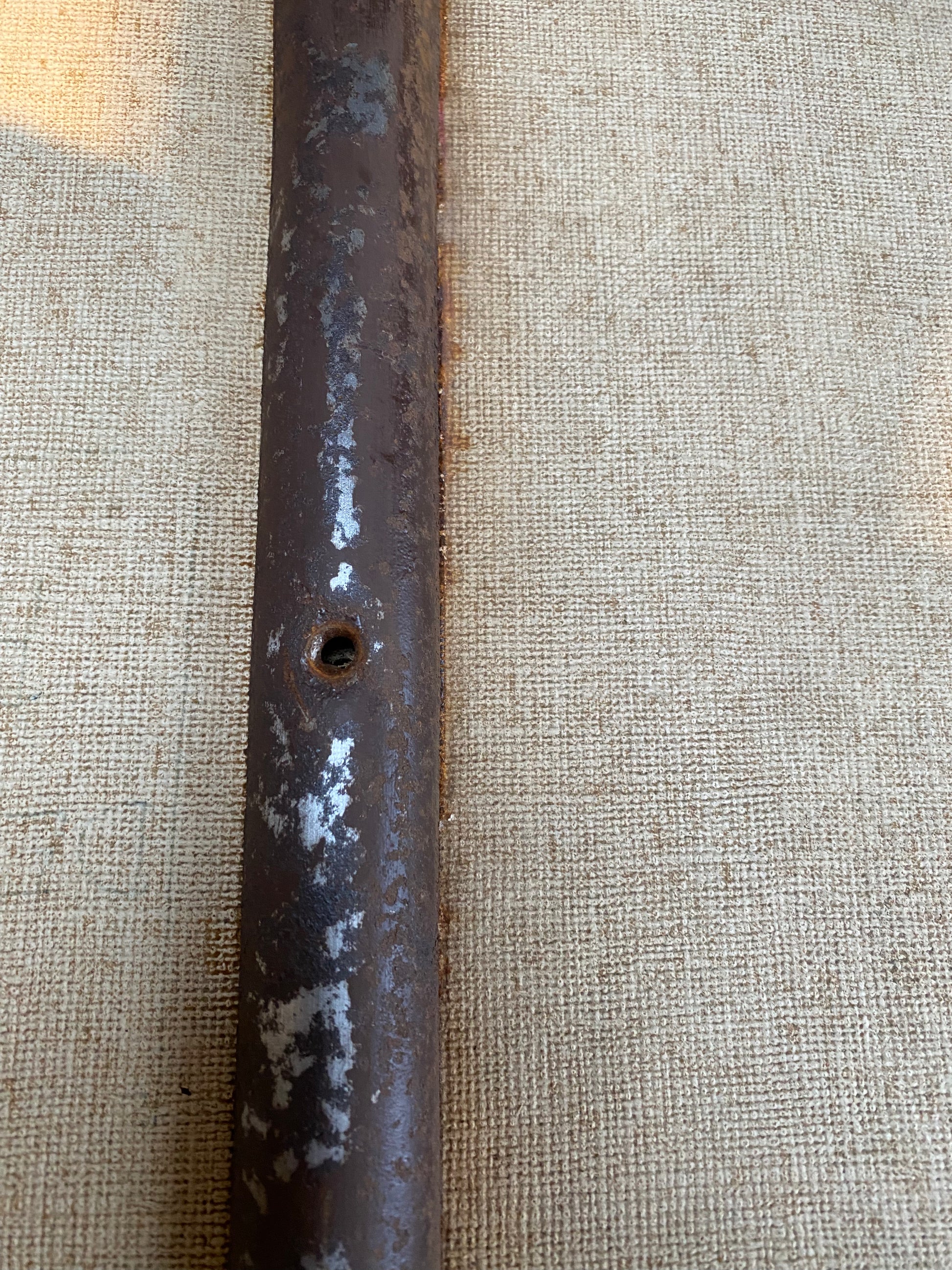 The original metal bands were heavily rusted, and given the uncertain age of the case there was a possibility that the flaking paint was lead based. To ensure it was safe, the case was fully disassembled, stripped of all the old paint before getting an updated colour pallet.